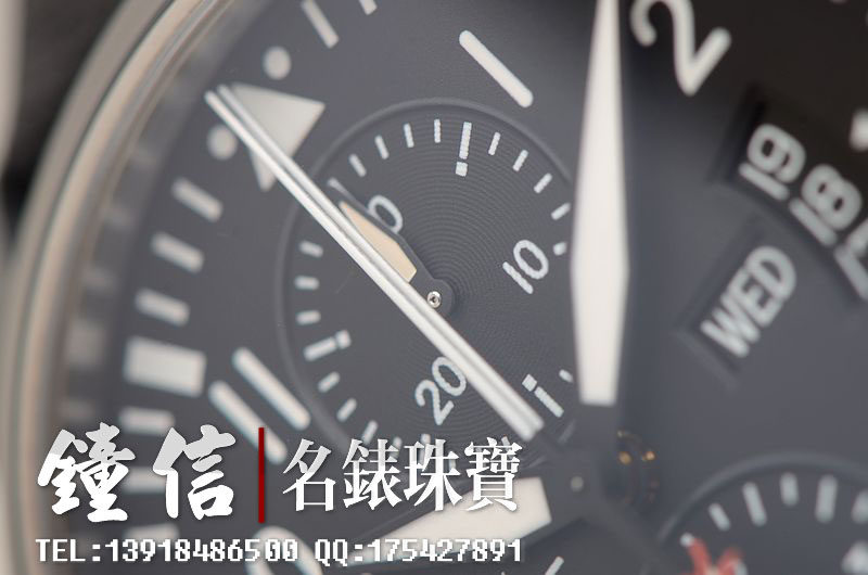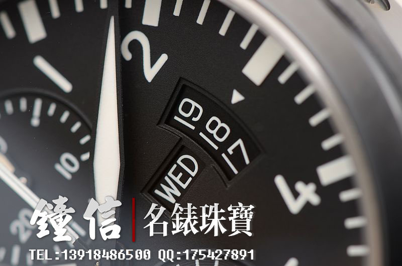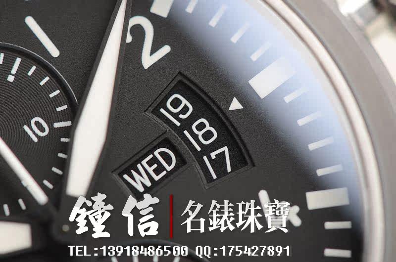IWC自产的CAL.79230型机芯,自动机械,两段计时及星期日历显示功能。29钻,摆频28800,动力储存约44小时。走时状态极佳。