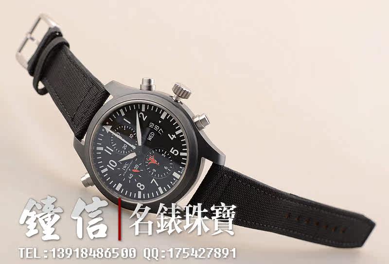 黑色陶瓷表壳,钛合金底盖及表扣,后配全新黑色编织皮表带。蓝宝石水晶镜面,立体黑色计时表盘,夜光刻度及指针,12点位30分钟计时,9点位独立小秒针,6点位12小时计时。3点位星期日历显示,双追针计时功能。旋入式防水表冠,口径46MM*17.8MM。防水60M。