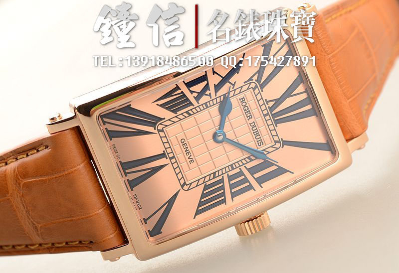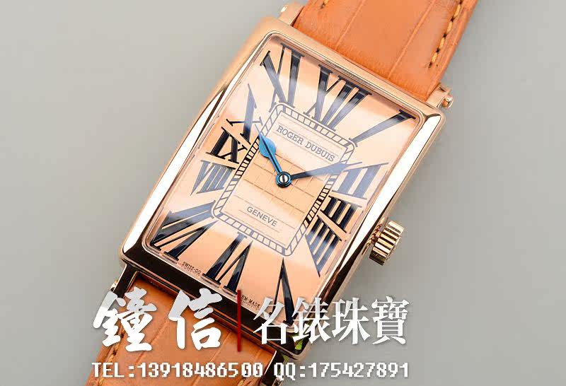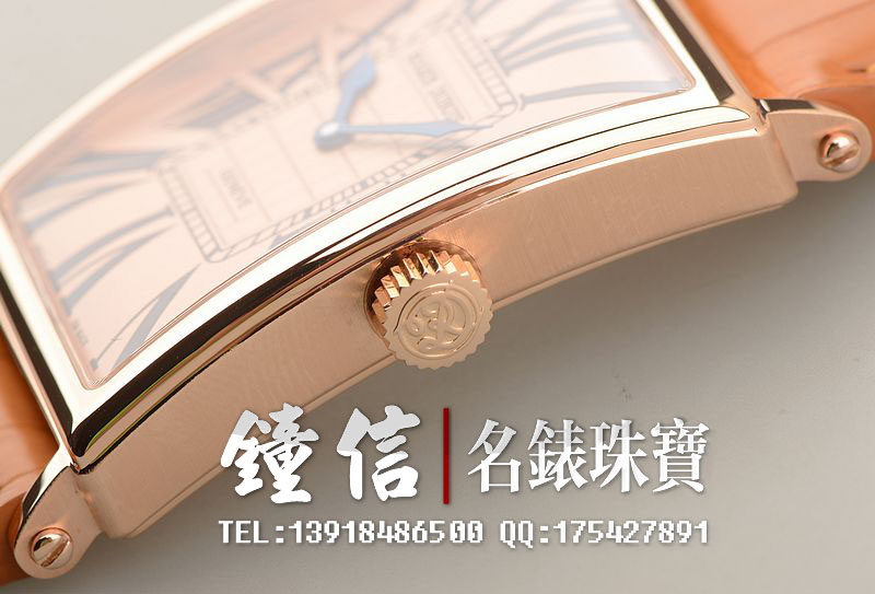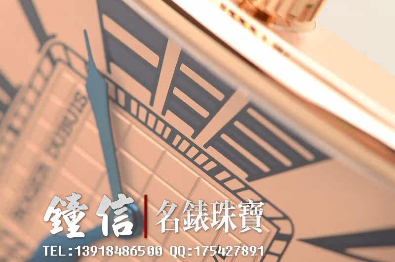 18K玫瑰金表壳及表扣,圣伯纳狗头印记。后配全新棕色鳄鱼皮表带。