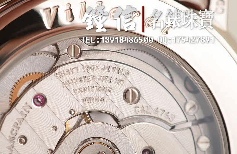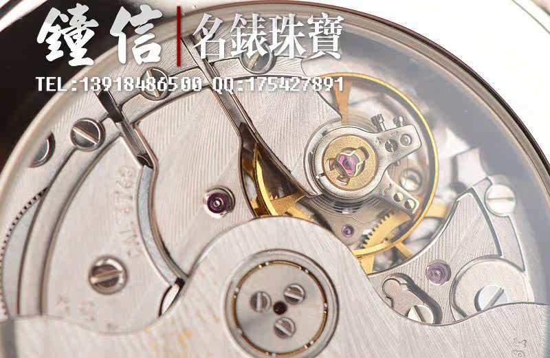 JB自产的CAL.6763型机芯,自动机械,极其精致日内瓦条纹打磨,倒角抛光修饰。30钻,摆频21600,动力储存约100小时,四天链。5方位校正,18K白金自动转陀。走时状态极佳。