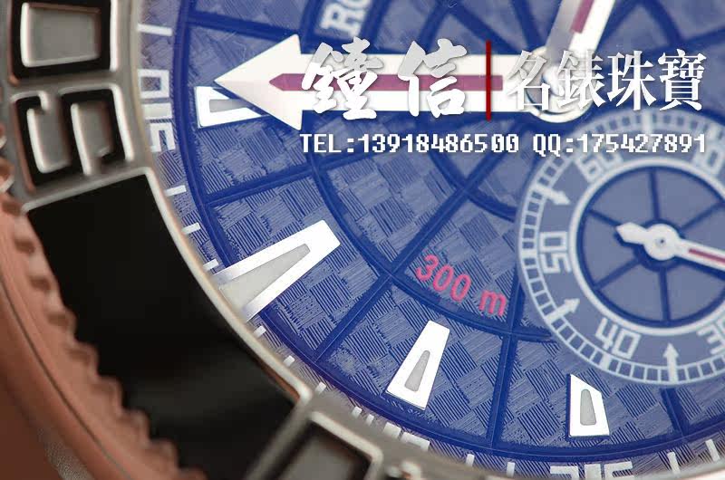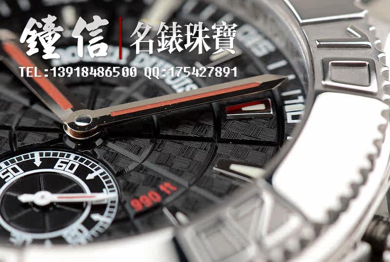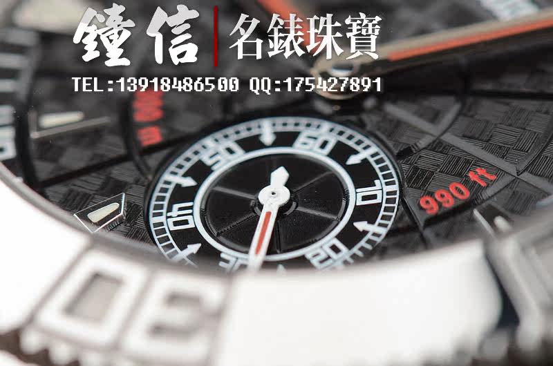 钛合金及黑色碳纤维表壳,白金可旋转计时表圈。原厂黑色橡胶表带。折叠式表扣。抗反光镀层蓝宝石水晶镜面及底盖,立体黑色碳纤维表盘,白金指针及刻度。旋入式防水锁把。口径46MM*15MM。防水300M。