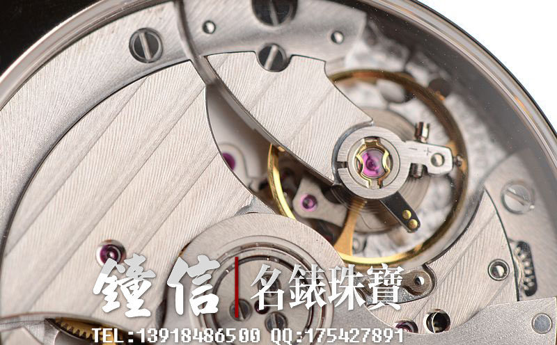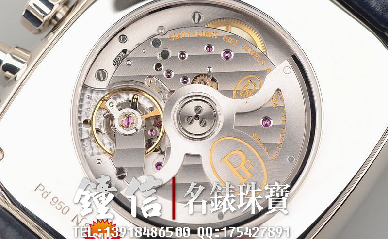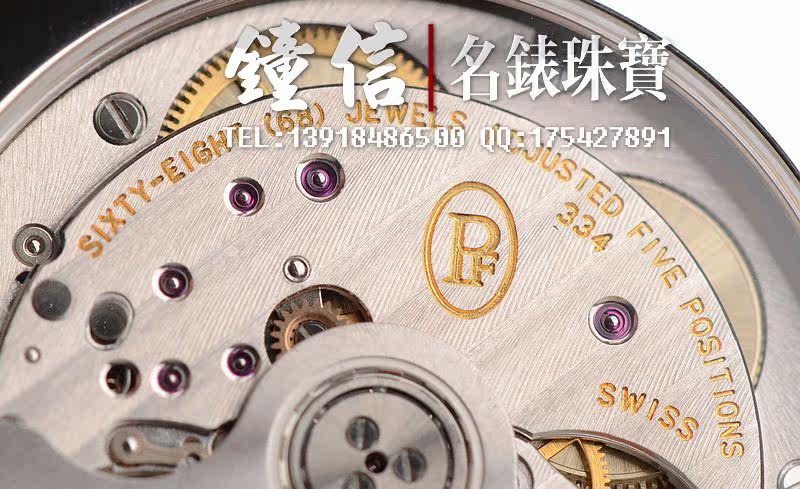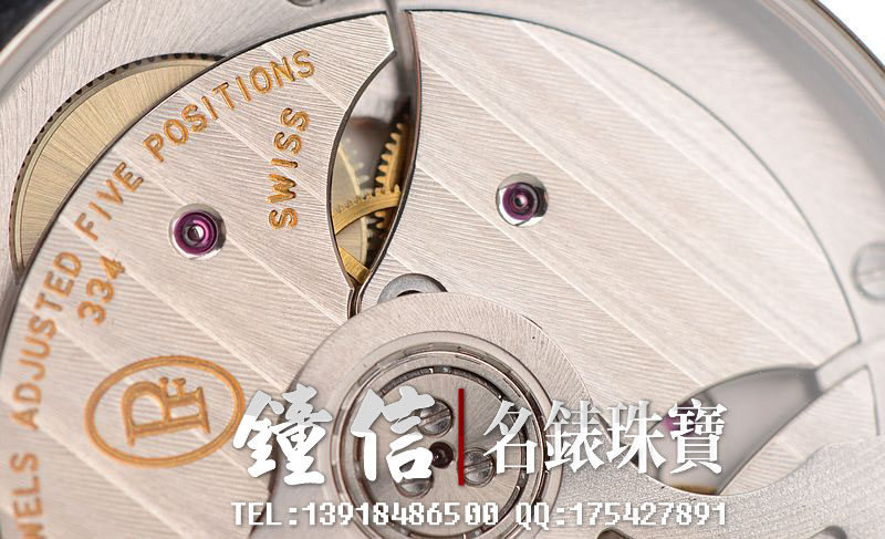 帕玛强尼自产的CAL.PF334型机芯,自动机械,极其精致日内瓦条纹打磨,高达68钻,5方位校正,摆频28800,动力储存约50小时,走时状态极佳。