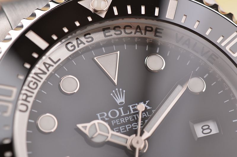 904L精钢表壳及链带,全新的GLIDELOCK带扣,实现对表带长度进行的细微调校并配有双延展系统。表壳后盖采用具有极高耐抗性的5级钛合金,并配以性能卓越的 904L 精钢圆环固定。标有 60 分刻度的黑色 CERACHROM 陶瓷单向旋转外圈, 被镌刻在 CERACHROM 陶瓷字圈上的数字与刻度均通过劳力士专利性的 PVD 技术填充铂金。抗刮损5毫米拱型蓝水晶玻璃,抗压能力倍增。立体黑色表盘,指针及刻度上均涂有蓝色荧光材质 Chromalight,3点位日历视窗。排氦气阀位于外壳边缘的9点钟位置。口径44MM*17.6MM。旋入式防水表把,防水高达3900M。
