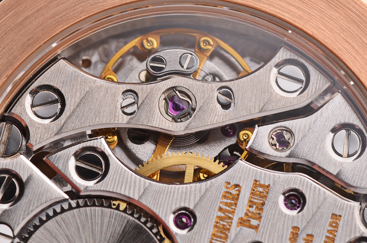 AP自产CAL.3090型机芯,手上链,极其精致日内瓦条纹打磨,倒角抛光修饰,21钻,摆频21600,动力储存约48小时,走时状态极嘉。