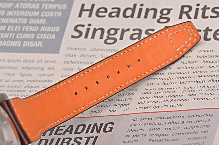 精钢表壳及折叠式表扣,原厂深棕色鳄鱼皮表带未使用成色。抗反光涂层蓝宝石水晶镜面,立体蓝色表盘,夜光刻度及指针,3点位指针式7天动力储备显示功能,6点位日历显示功能。旋入式防水洋葱头表冠。口径46MM*16MM。防水60M。