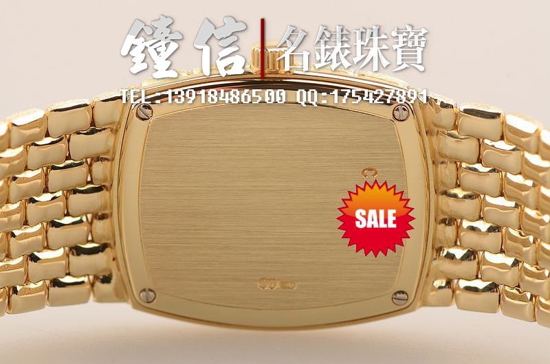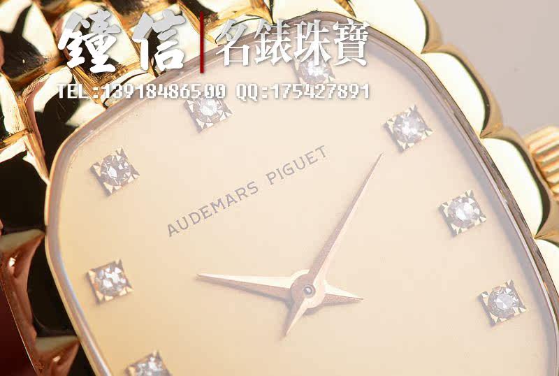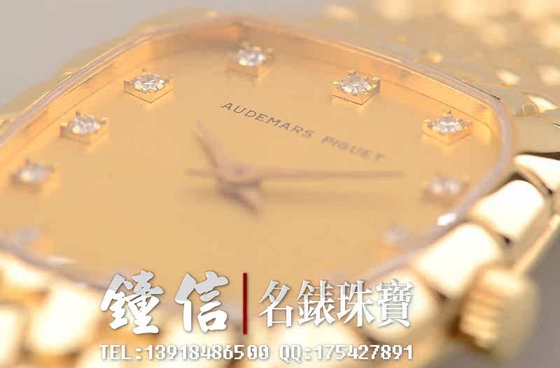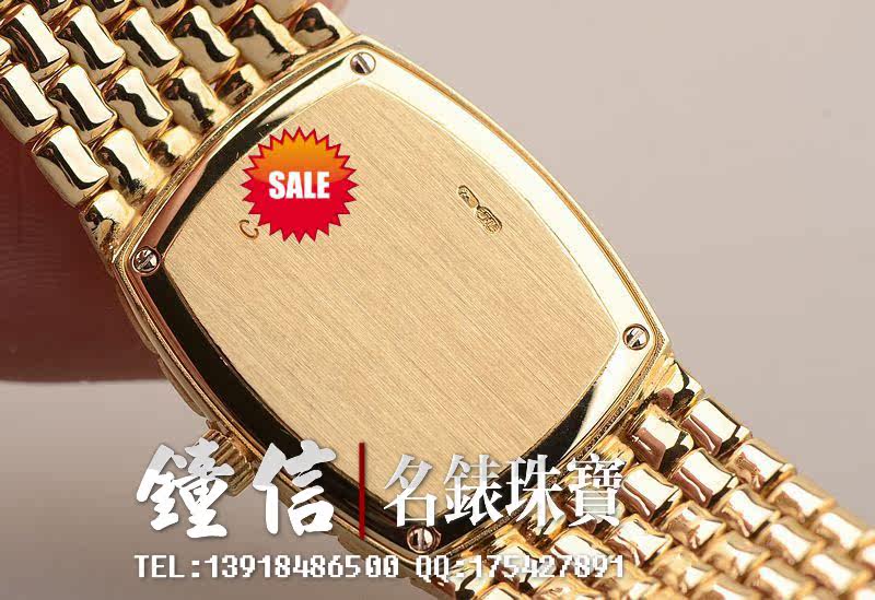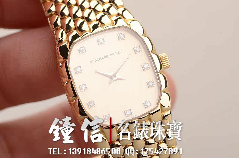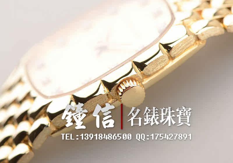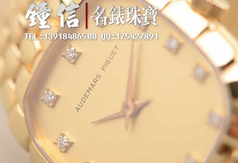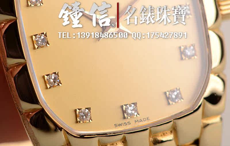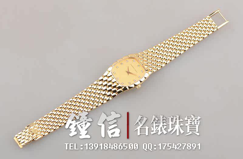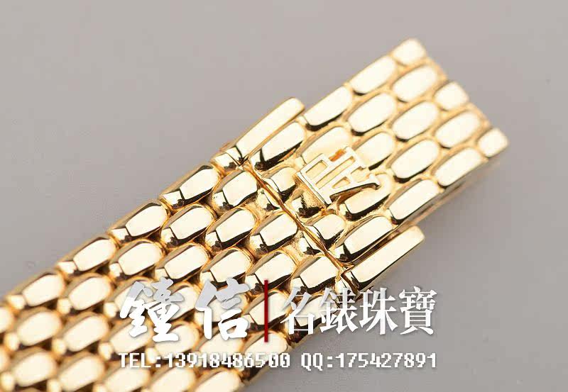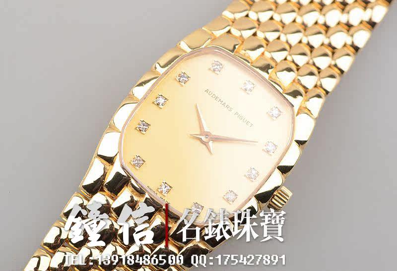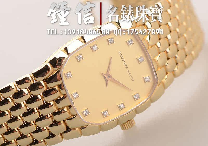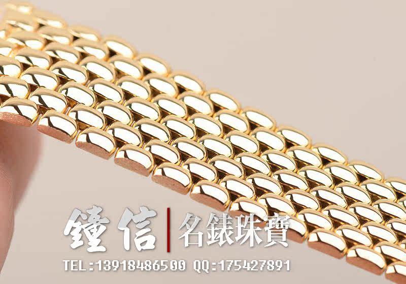 18K黄金表壳及编织链带,女皇头印记。蓝宝石水晶镜面,立体香槟金色表盘,原厂钻石刻度。黄金时分针。口径20MM(不含耳廓)*22MM*5MM,相当于圆表25MM左右大小。防水30M。