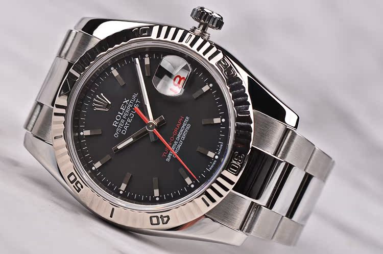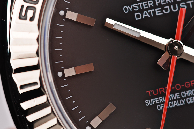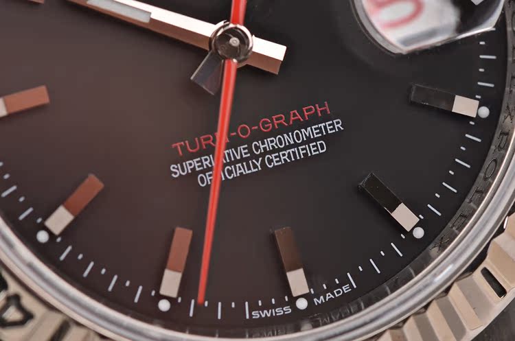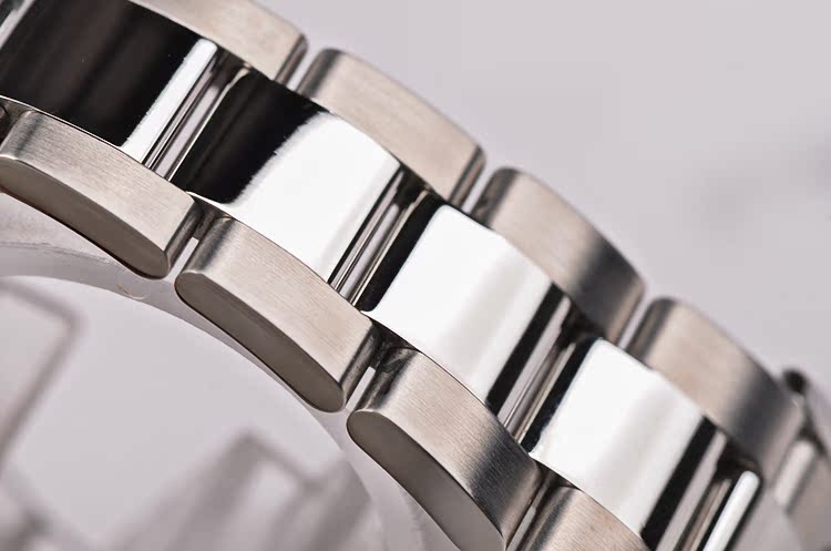 904L精钢表壳及链带,白金双向旋转三角坑纹表圈,专利折叠式表扣。蓝宝石水晶镜面,立体黑色表盘,夜光刻度及时分针,红色秒针,3点位红色日历视窗。口径36MM*10MM。旋入式防水锁把,防水100M。