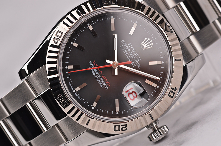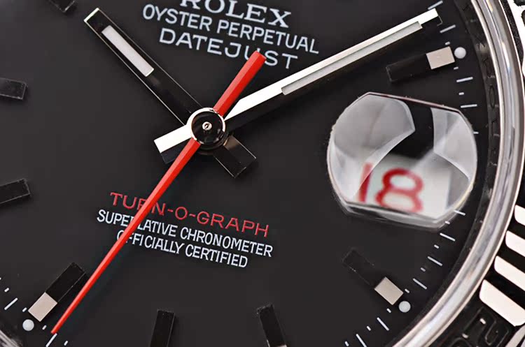 劳力士CAL.3135型机芯,自动机械,瑞士天文台认证,31钻,瞬调日历,KIF避震器,PARACHROM游丝,四臂Glucydur合金摆轮,摆频28800,动力储备约50小时。走时状态极嘉。