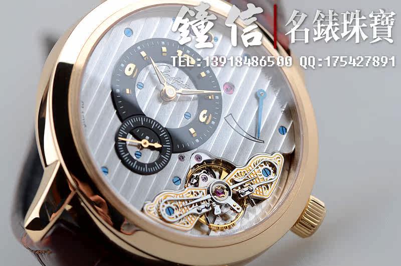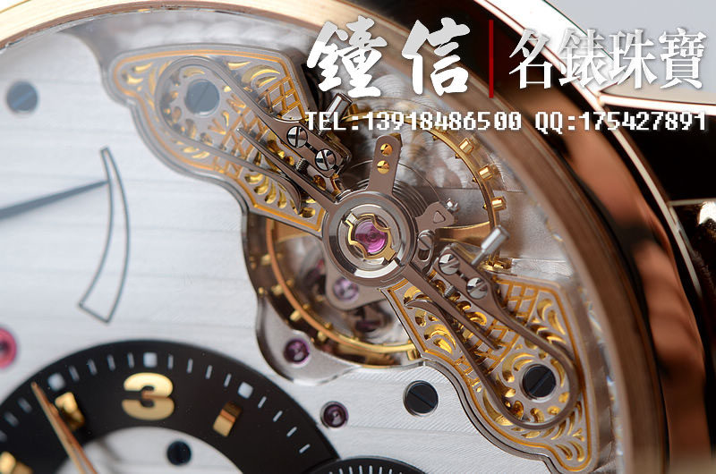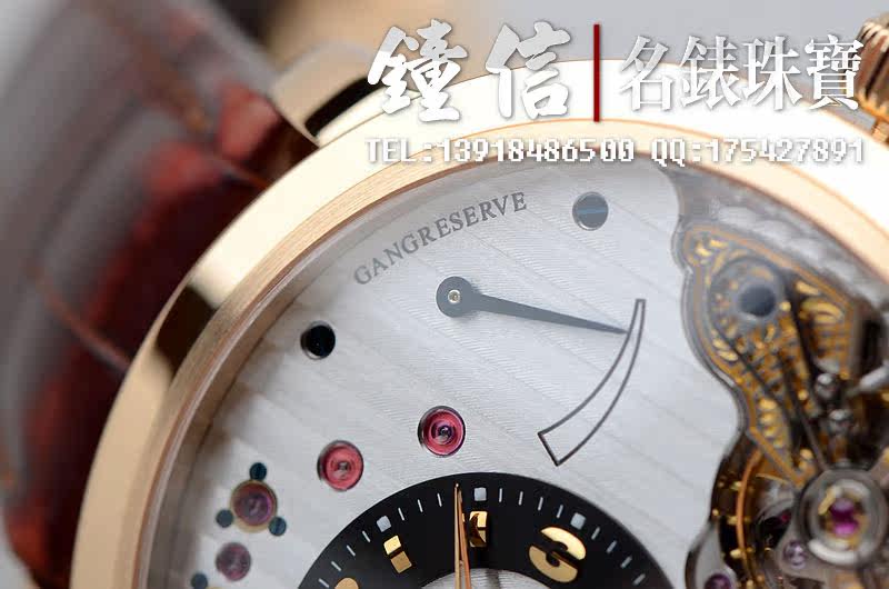 GO自厂66手上链机芯,31钻,28800摆频。打磨极其精细且具备很强的艺术感。双鹅颈微调,别出心裁的反做鹅颈于表盘正面。这个款式获得了2010年巴塞尔表展设计大奖。小三针偏心设计,德国顶级表的风格典范。走时精准。