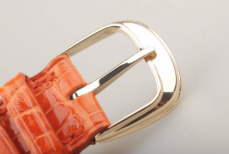 黄金表壳及表扣,配原厂全新鳄鱼皮表带。蓝宝石水晶表蒙,生活防水。
