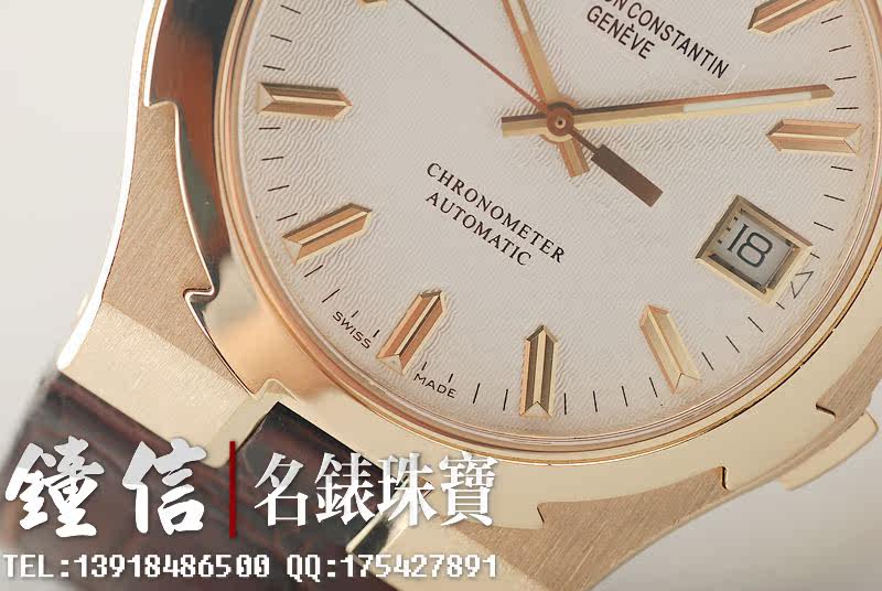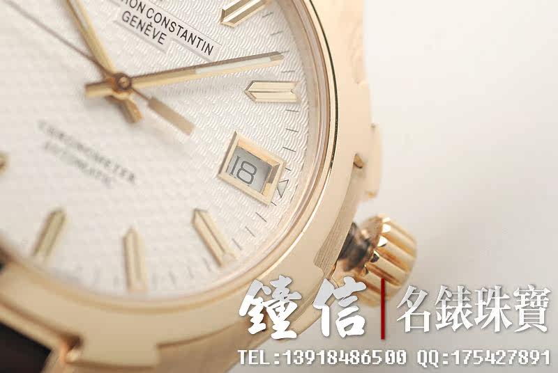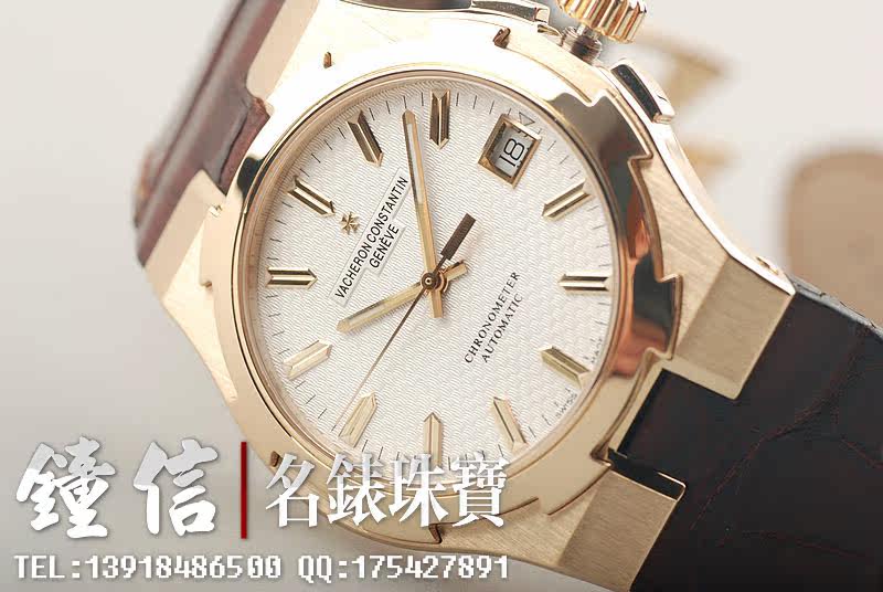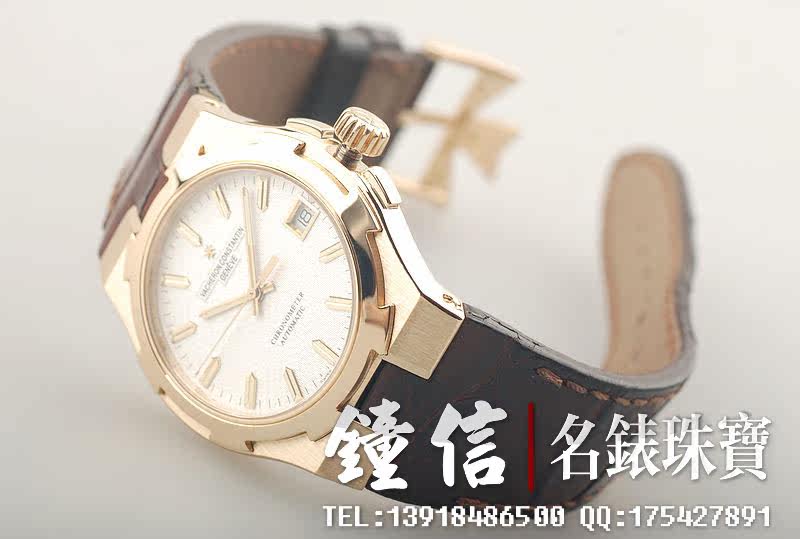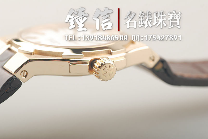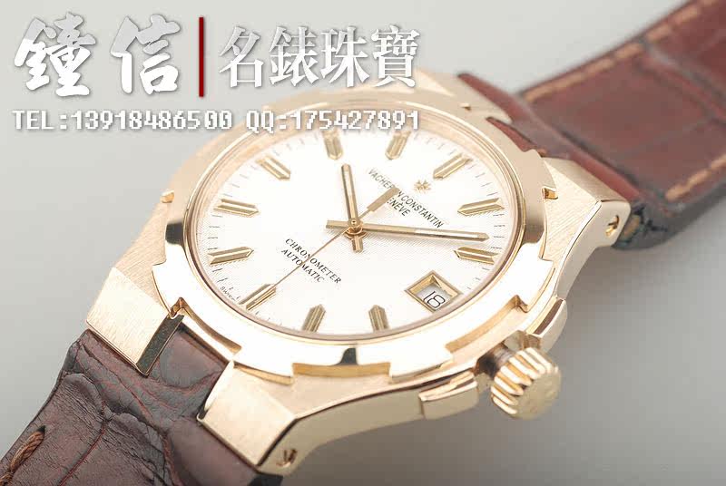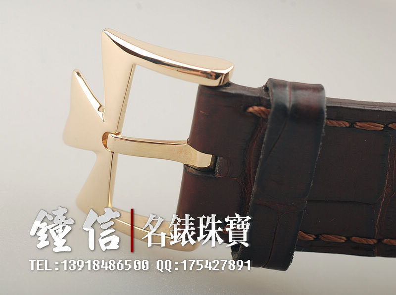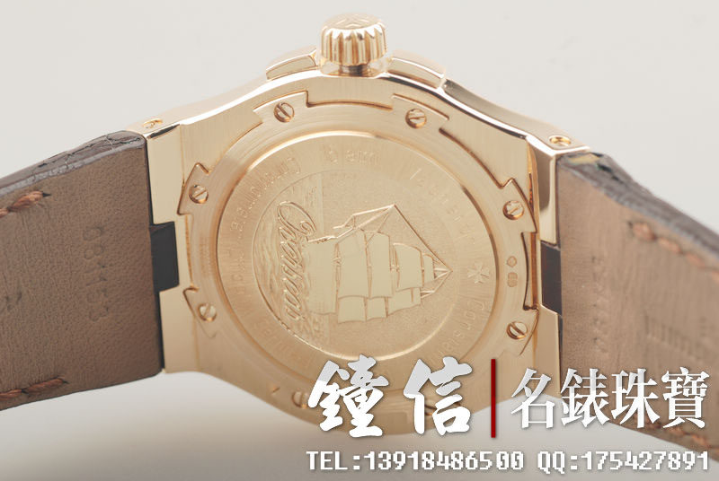 黄金表壳及表扣,圣伯纳狗头印记。原厂密西西比鳄鱼皮表带。口径37MM不含表把,含表把约39MM。纵横四海的款型比较显大的。精美的OVERSEAS扬帆出海黄金雕刻底盖。十字勋章表把。旋入式表冠。