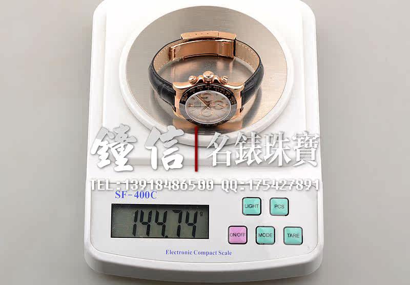 劳力士自产CAL.4130型机芯,自动机械,天文台认证,导柱轮计时机芯,精准至1/8秒,44钻,摆频28800,顺磁性蓝色Parachrom游丝,动力储存约72小时。走时状态极佳。