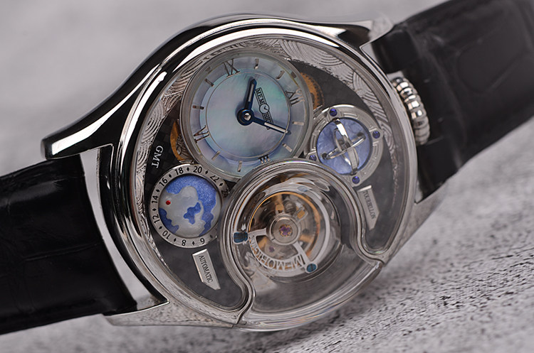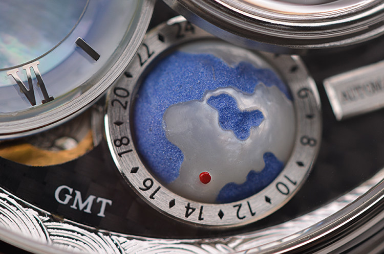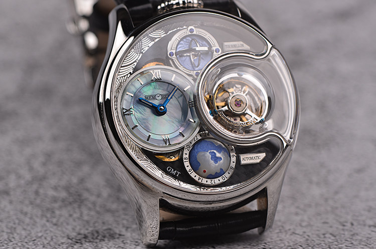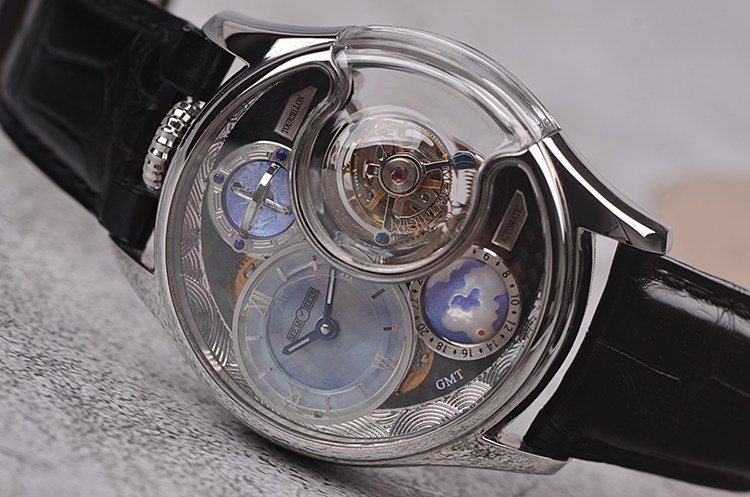 表盘:贝母面盘,地球GMT第二时区,陀飞轮
