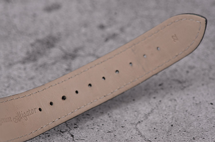表带:原厂黑色鳄鱼皮表带成色极新,另有一条原厂黑色鳄鱼皮表带备用,双原厂表带。