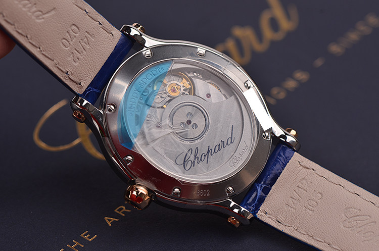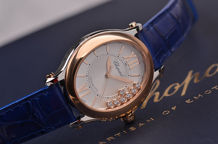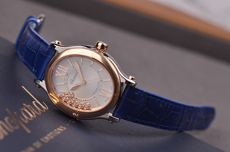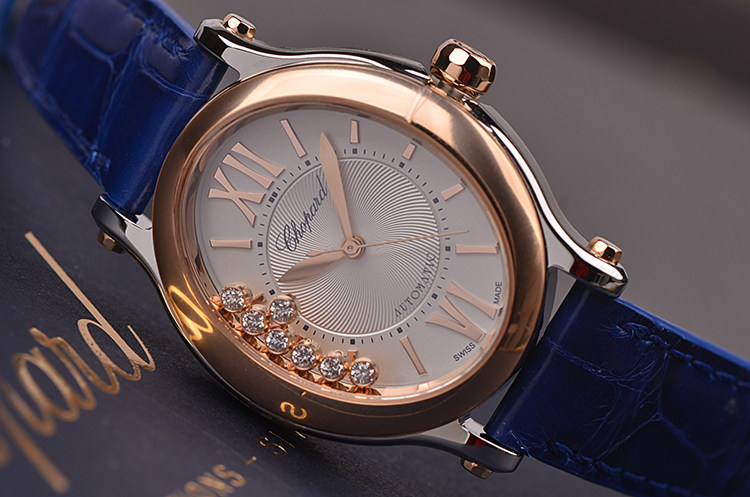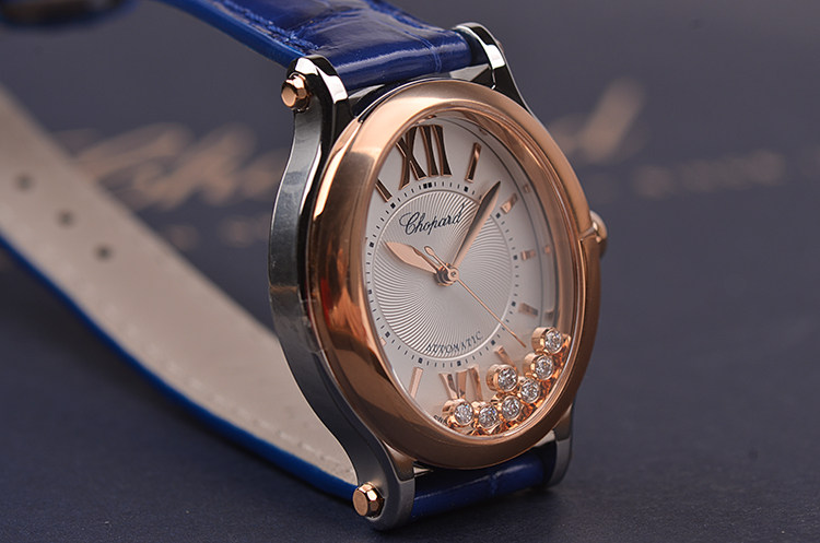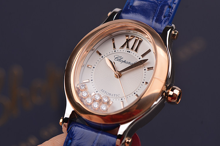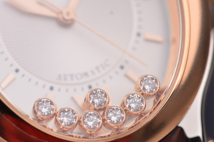 系列: Happy Sport Oval Automatic Ladies Watch快乐钻鹅蛋形玫瑰金圈自动机械皮带女表