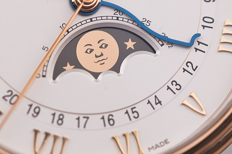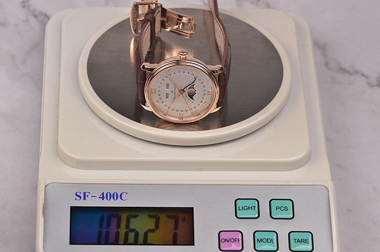 表盘:立体银白色表盘,月份,星期,日历,月相显示
