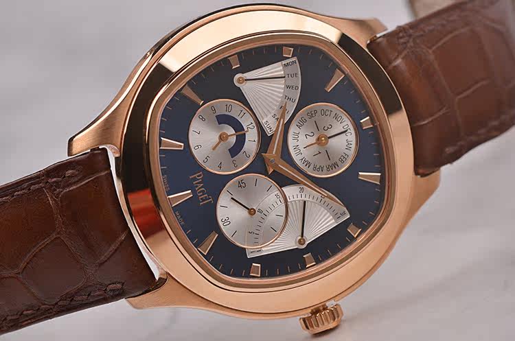 表带:原厂深棕色鳄鱼皮表带成色极新,仅试戴
