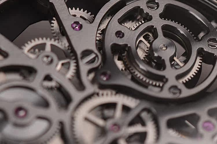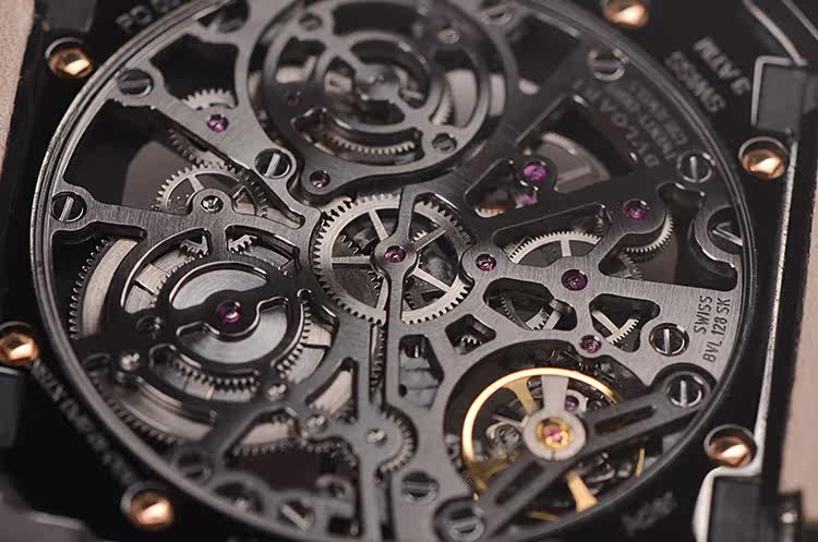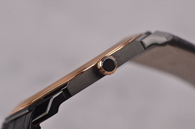 表壳:黑色DLC精钢表壳,18K玫瑰金表圈,DLC钛合金表扣