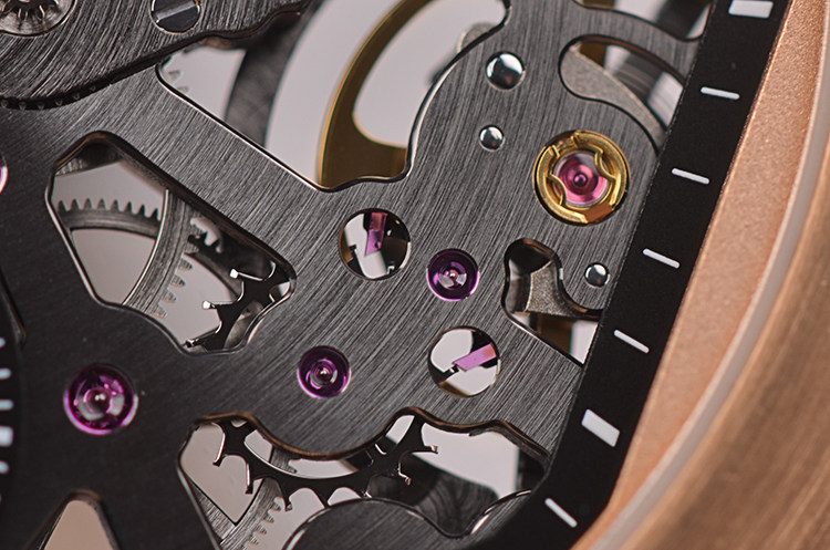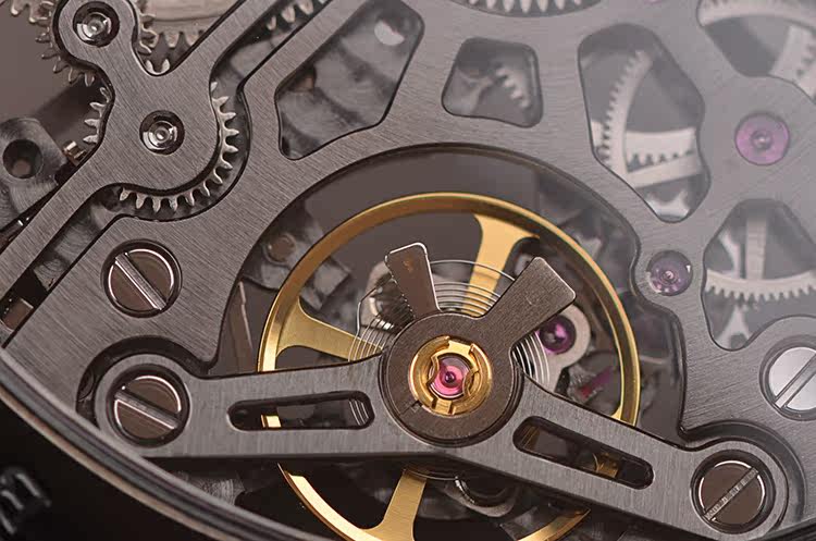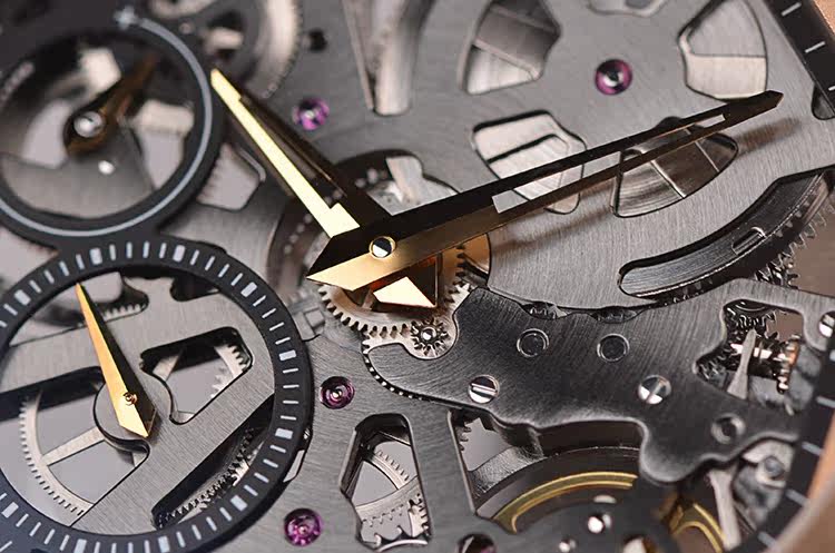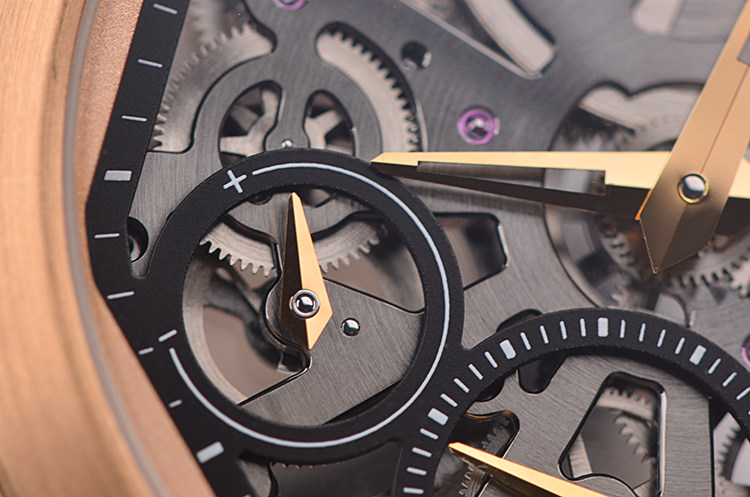 表盘:全镂空表盘,玫瑰金指针,动力储备显示