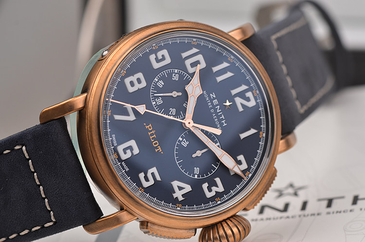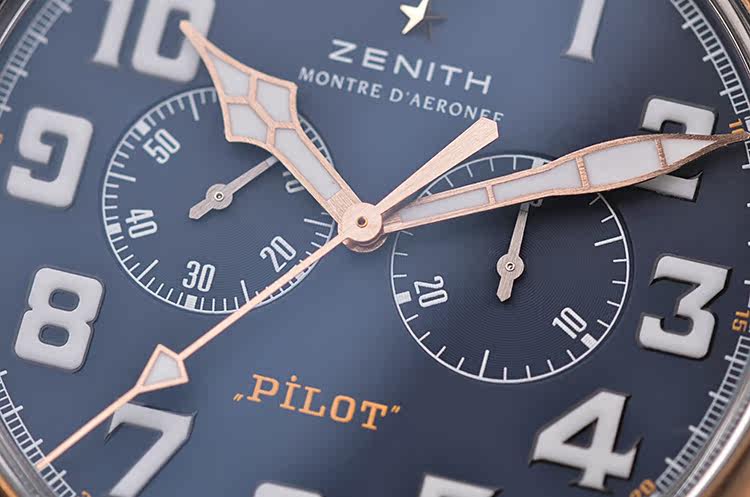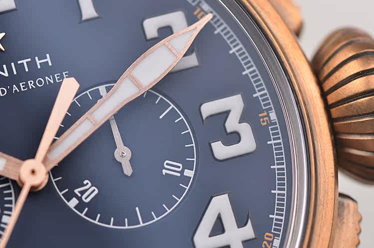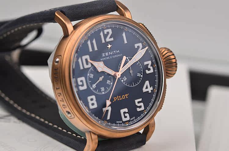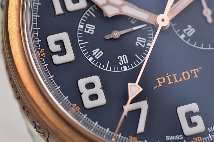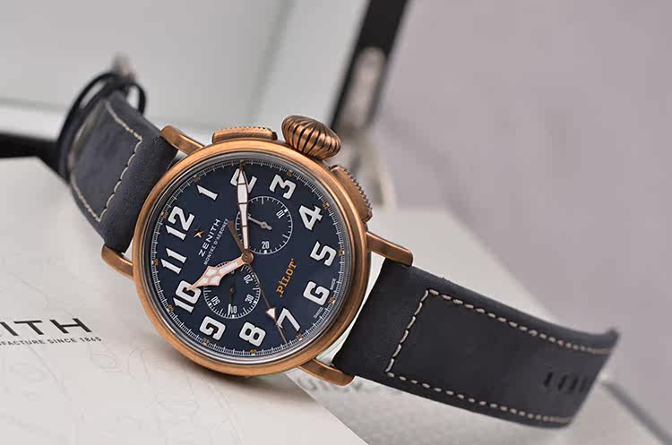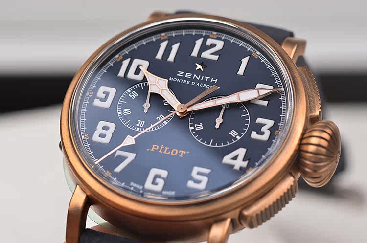 青铜特别版飞行员蓝面高频计时自动机械皮带男表