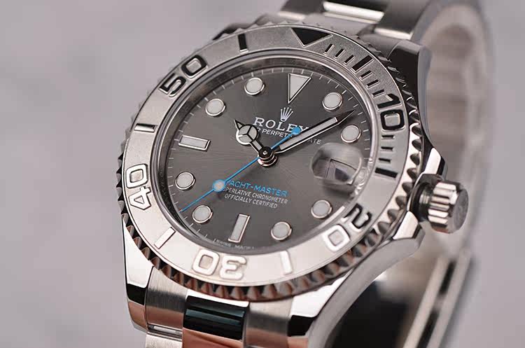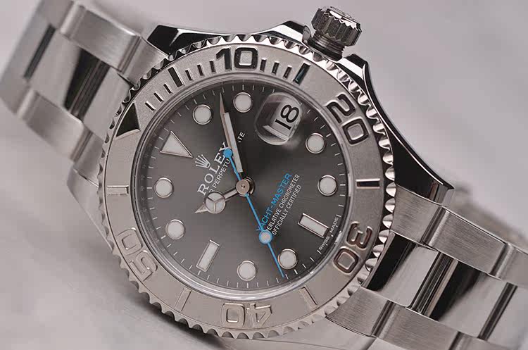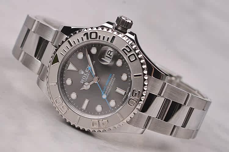 最新款游艇名仕型铂金圈灰面自动机械钢带腕表