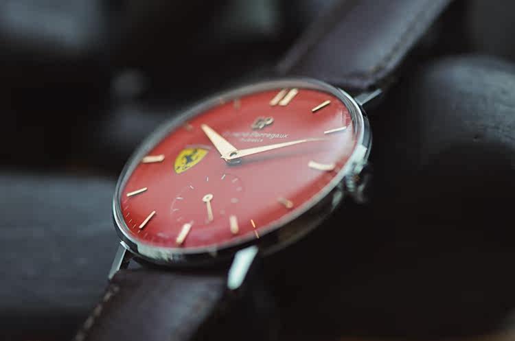 系列: 法拉利系列vintage红盘小三针手上链皮带男表