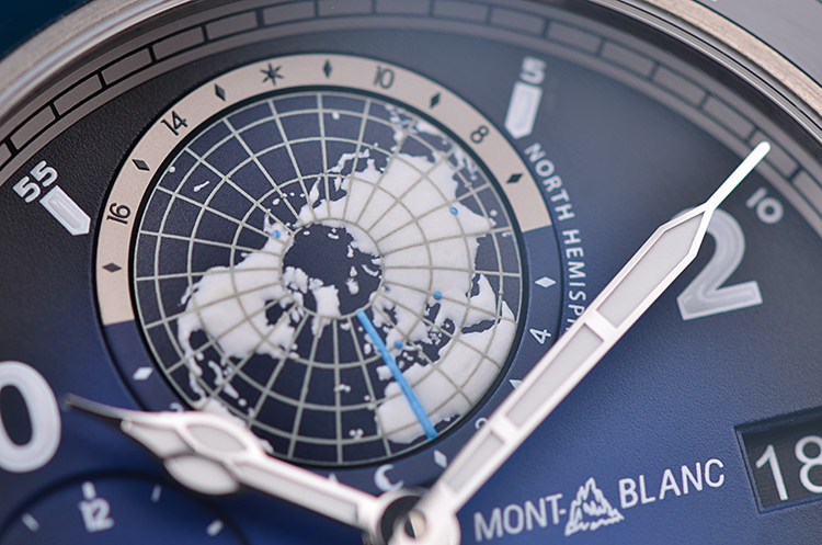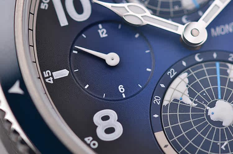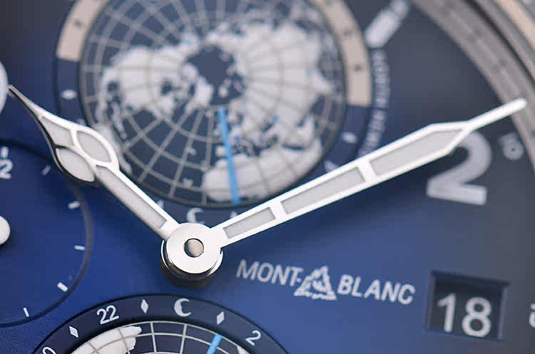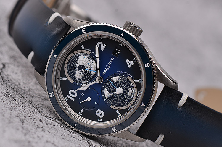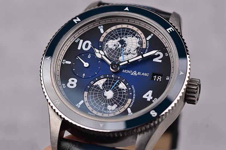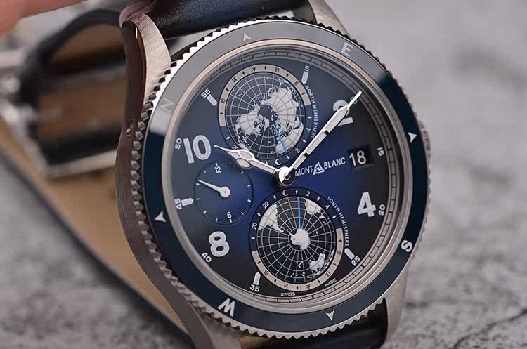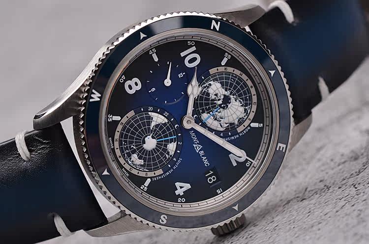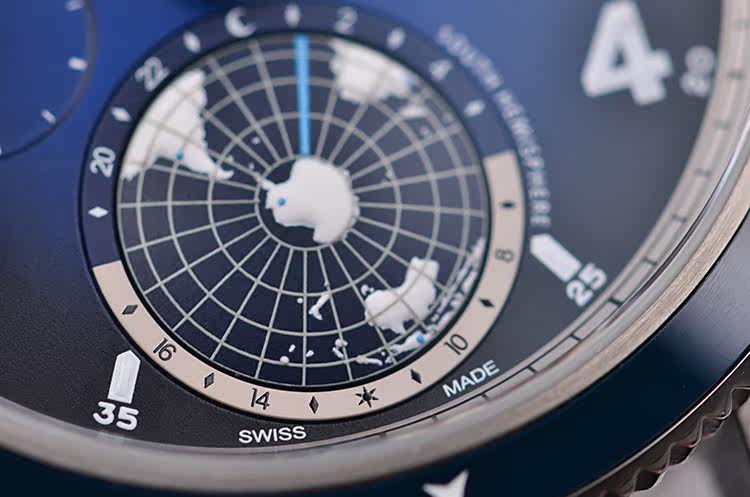 表盘:立体蓝黑色南北半球世界时表盘