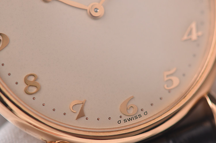 表盘: 立体奶油白色面盘,玫瑰金阿拉伯数字刻度及鱼眼指针