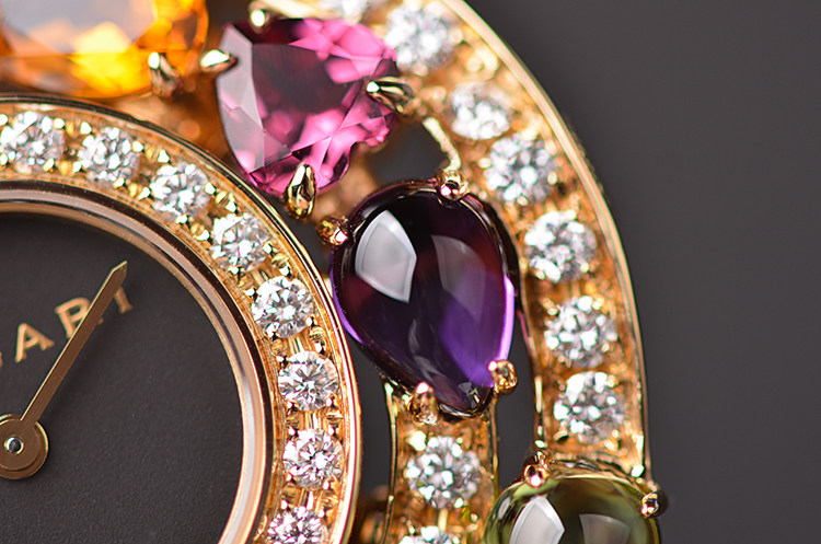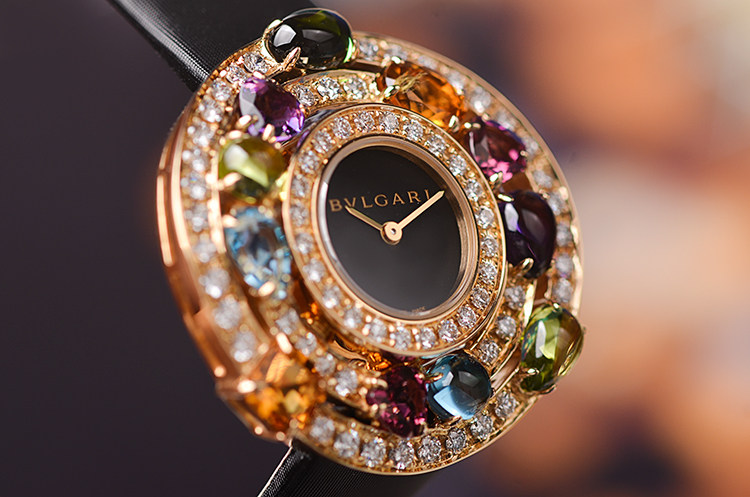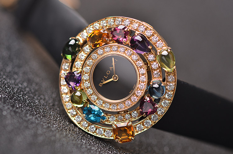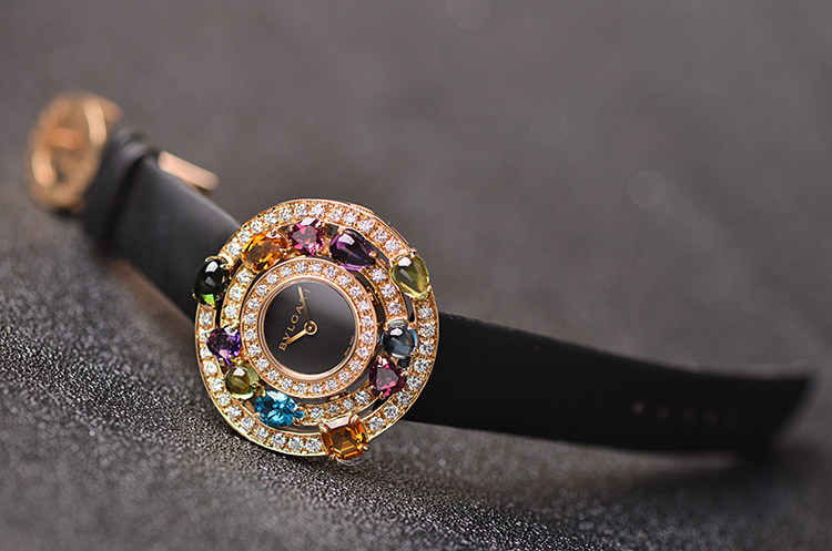 高级珠宝腕表系列黄金镶钻及彩宝石英折叠扣皮带女表