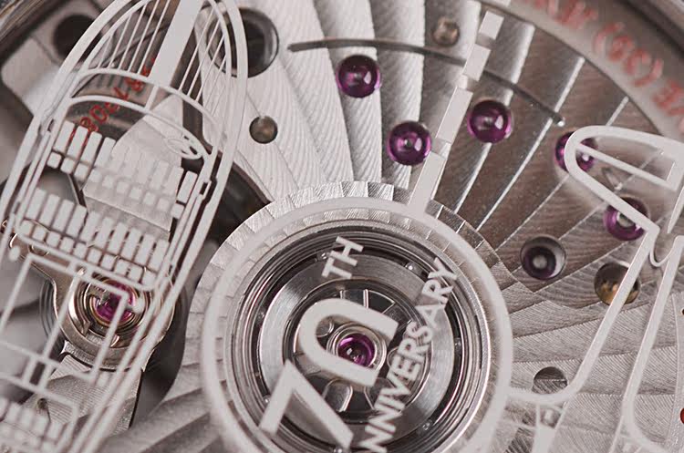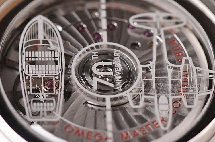 表壳:精钢表壳,限量版激光雕刻70周年标识、克里斯战艇图案、以及英国皇家空军选用的首架喷气式飞机——格洛斯特流星战斗机图案蓝宝石玻璃底盖