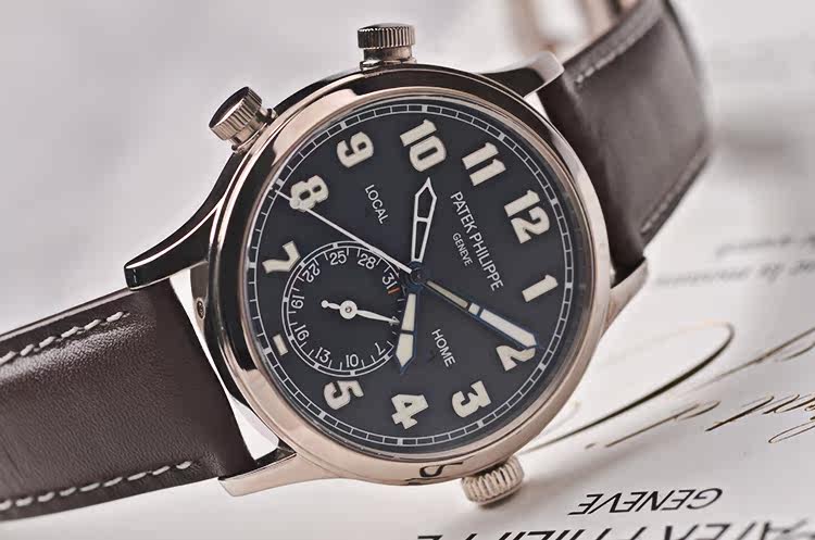 飞行家旅行时间白金两地时日历显示自动机械男表