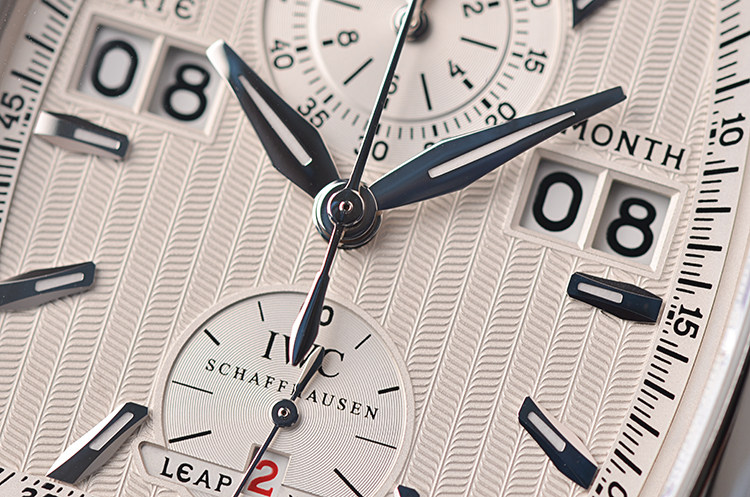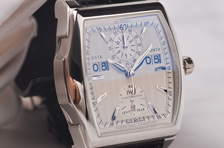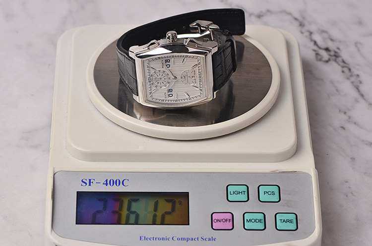 表盘:立体银白色万年历计时表盘,白金刻度及指针,数显闰年、月份、日历