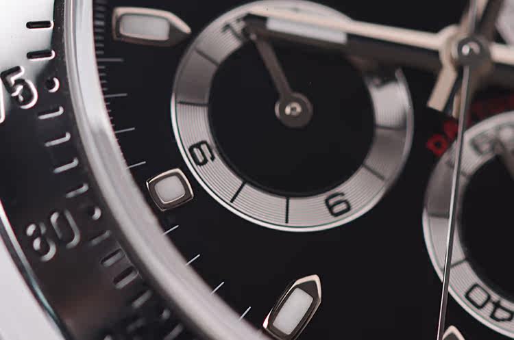 表盘:立体黑色计时面盘,夜光刻度及指针
