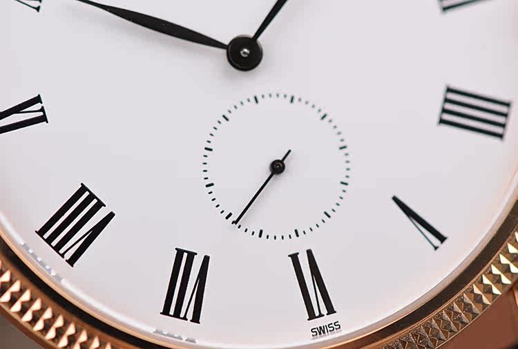 表盘:白色搪瓷表盘,黑色罗马数字刻度