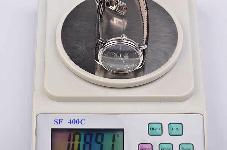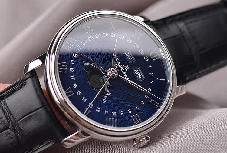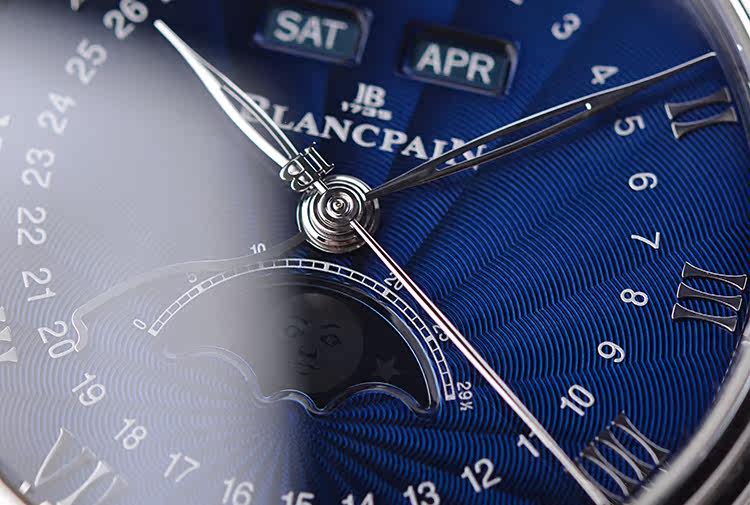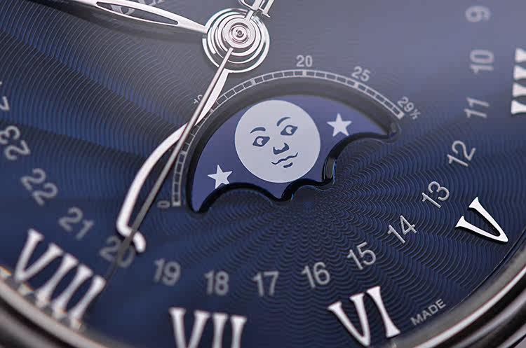 表盘:立体蓝色表盘,月份,星期,日历,月相显示