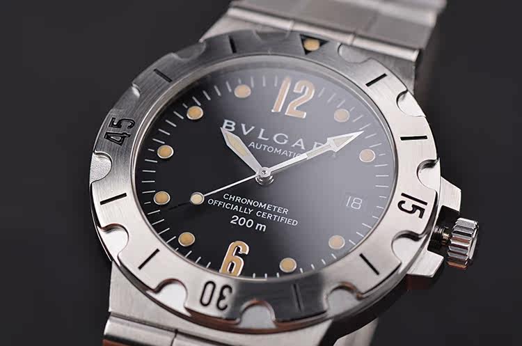 DIAGONO专业潜水大三针日历自动机械钢带男表