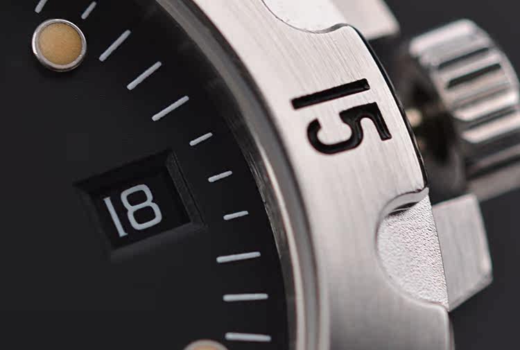 表盘:立体黑色表盘,夜光刻度及指针,日历显示