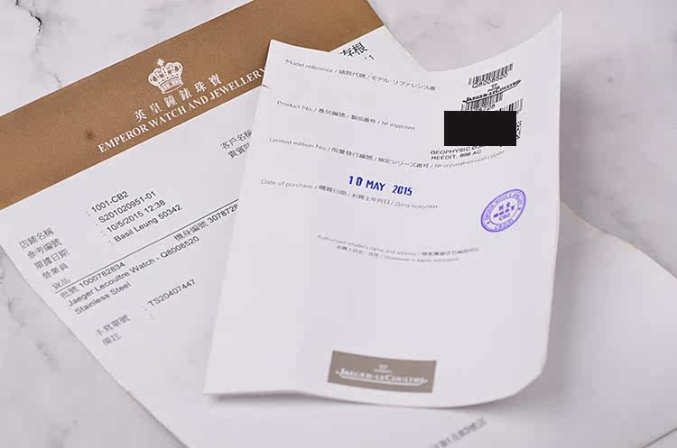 附件:购买发票,保修卡(2015年5月),原表主一手购入于香港英皇钟表。