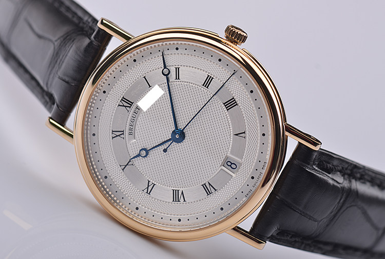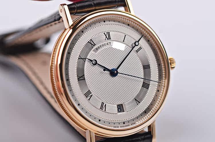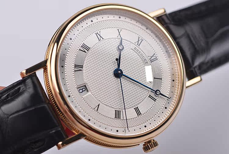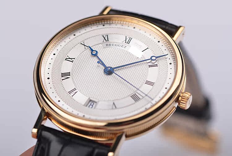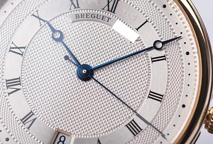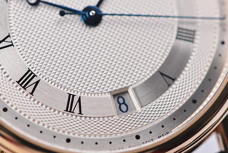 表盘: 立体白金镀银镌刻表盘,蓝钢鱼眼指针,日历显示