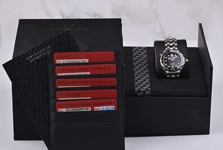 附件齐全,原厂007五十周年表盒,皮卡套,限量证书,钻石证书,机芯证书,天文台证书,保修卡(2012年8月),国行货品。