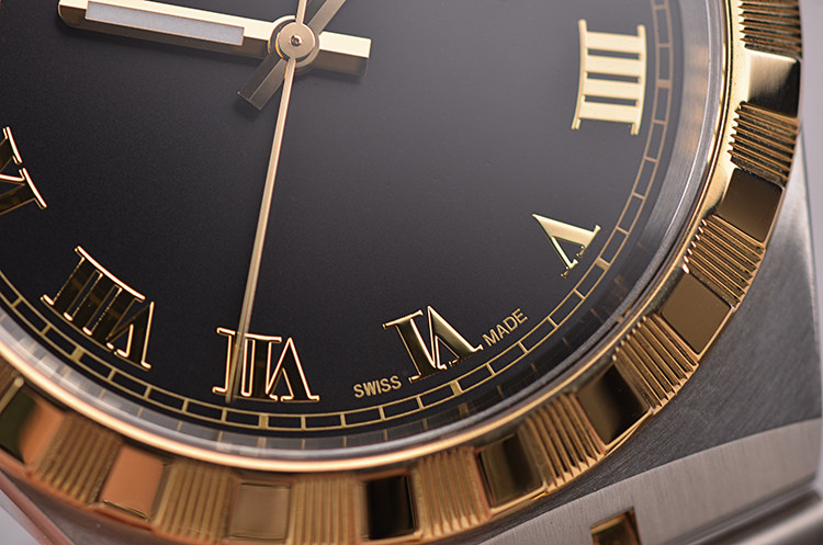 表盘:立体黑色表盘,黄金罗马数字刻度及指针,星期及日历显示