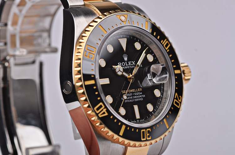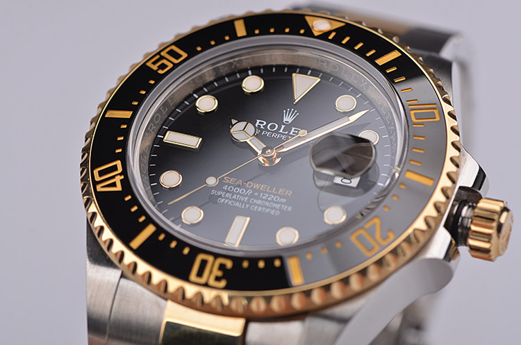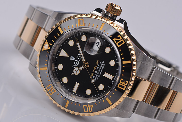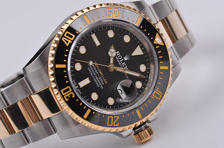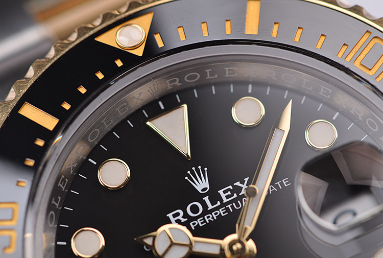 表壳:904L精钢表壳,18K黄金内嵌黑陶瓷表圈