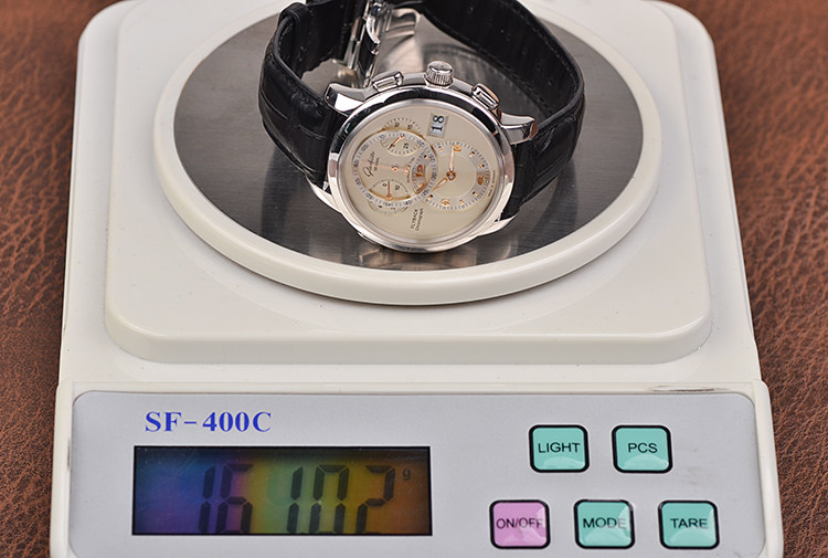 白金大日历悬浮式飞返计时自动机械折叠扣男表
