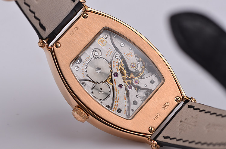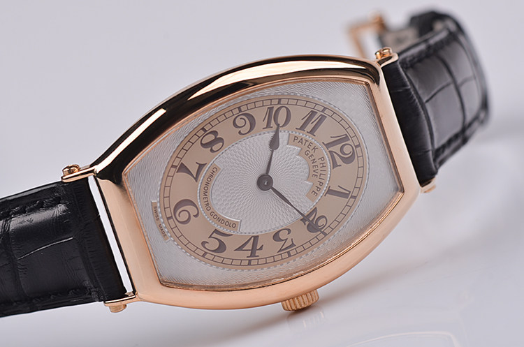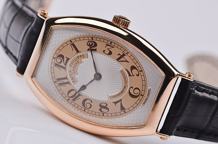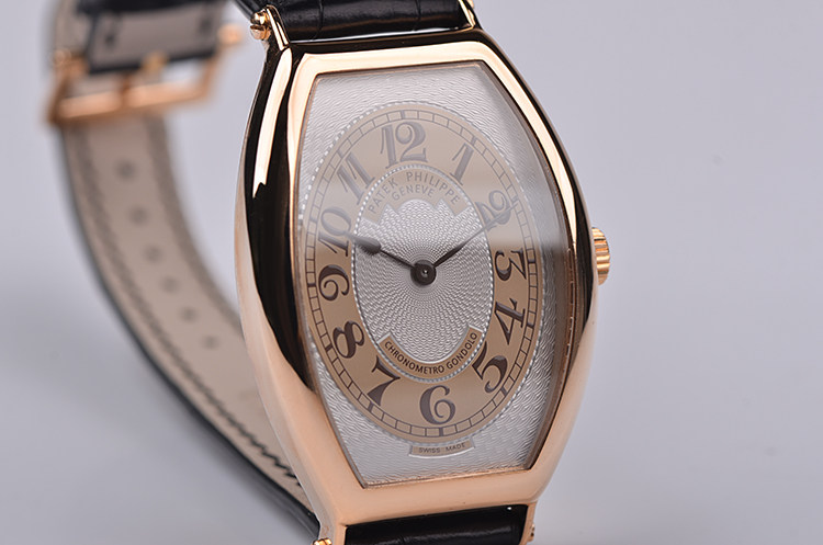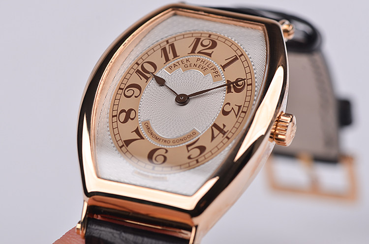 玫瑰金酒桶型两针手上链皮带男表