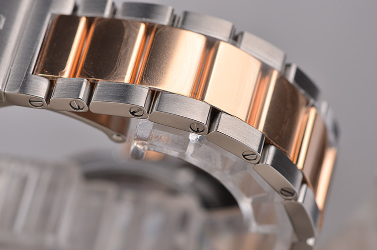 表壳:精钢表壳,18K玫瑰金表圈