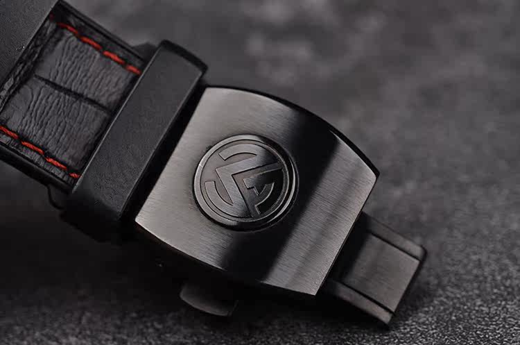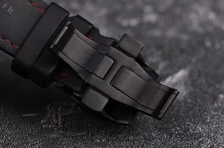 表壳:DLC黑色及红色钛金属表壳,DLC黑色精钢折叠表扣
