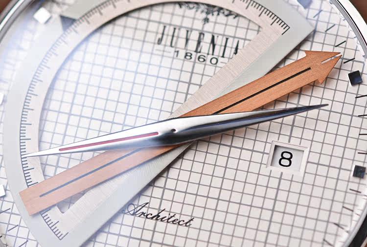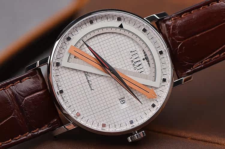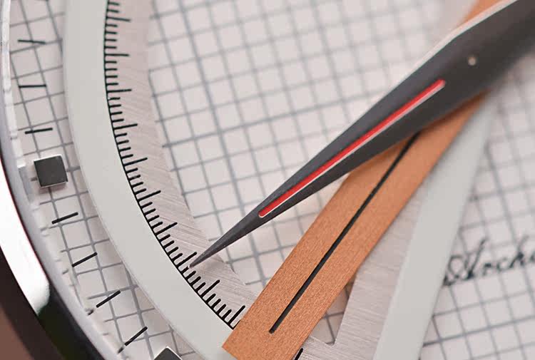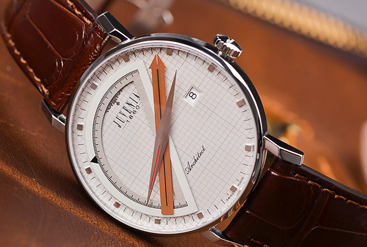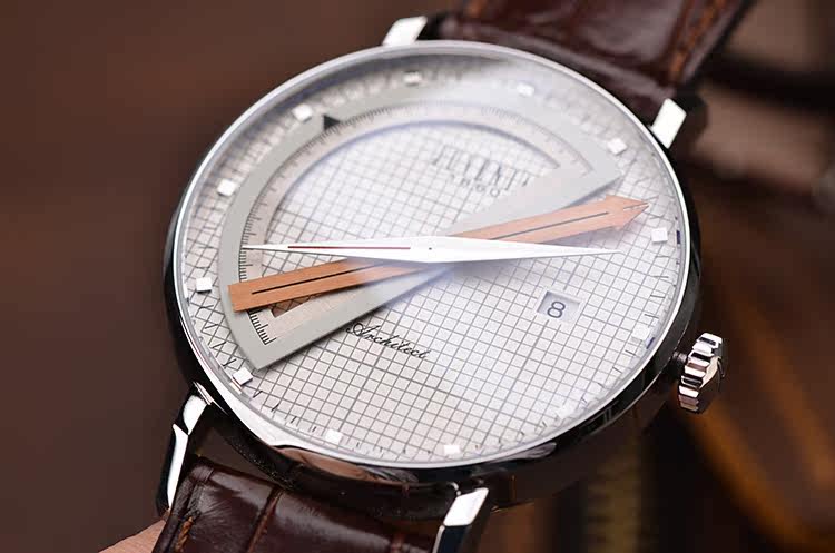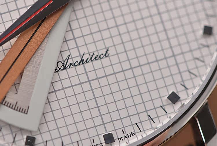 Sextant六分仪时计凭借独一无二的设计在近70年的时光中广受追捧,全因设计师、建筑师、工程师、航海家……等专业人士对工具有着宛如战友般的信赖情结。全新Architect建筑师系列精钢款式有别于此前致敬杰克船长的华丽风格,而改以明朗色调凸显现代风尚。40毫米白色表盘上,精准细密的灰色网格线规律交错,呈现出坐标纸的专业情调;腕表以一贯独特的指针显示时间,半圆形量角器标示小时,金色的度尺指针显示分钟,罗盘式指针显示秒钟;位于三点钟的日期窗口稳稳落于两条坐标线的交点,令精准气质不言则明;表背设有蓝宝石水晶透明底盖,使J015自动上炼机芯一目了然。这一设计体现了尊皇表内敛低调、特立独行和不随波逐流的气质。