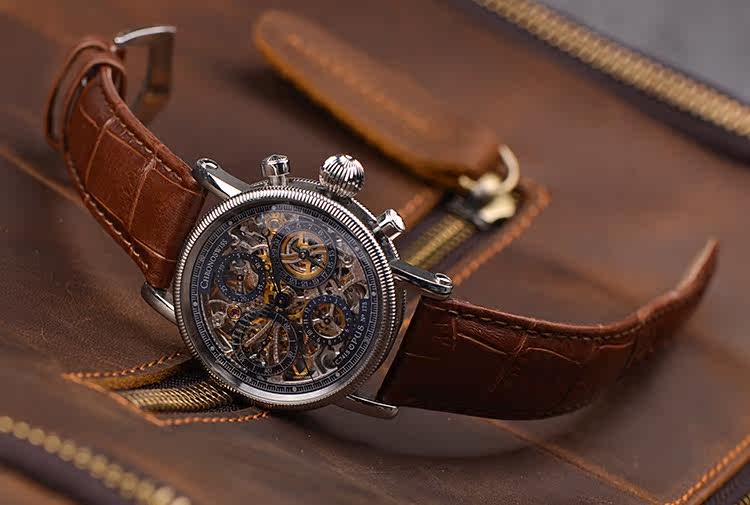 全镂空计时日历自动机械皮带男表