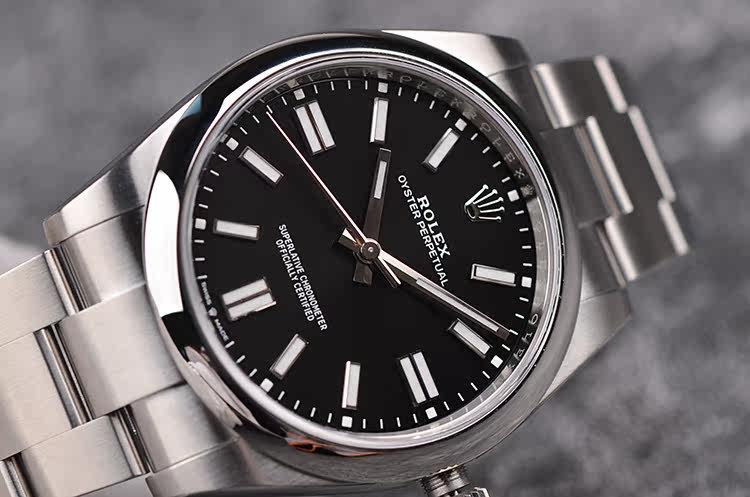 最新款蚝式恒动黑面大三针41MM自动机械钢带男表