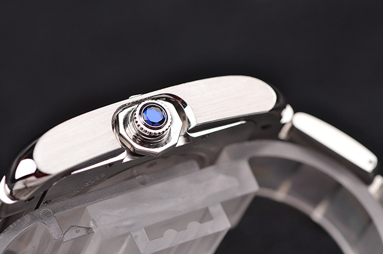 表盘:立体银白色表盘,蓝钢指针,黑色罗马数字刻度